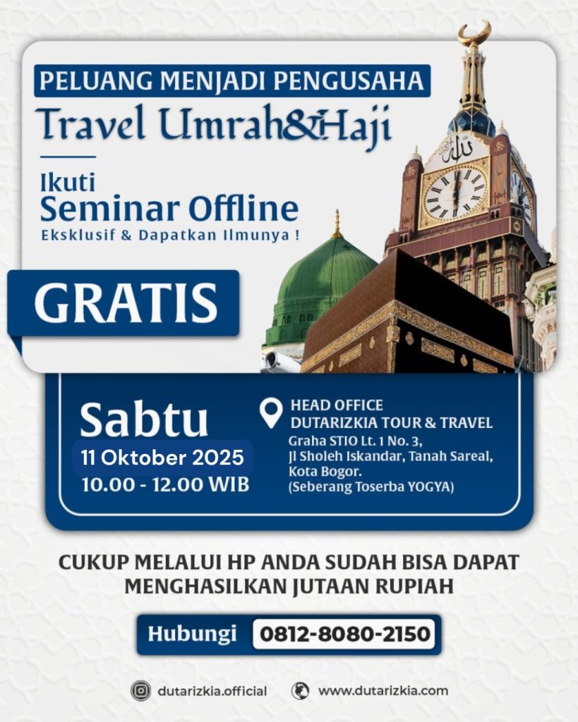 IKUTI SEMINAR PELUANG USAHA AGEN UMROH GRATIS DI KOTA BOGOR